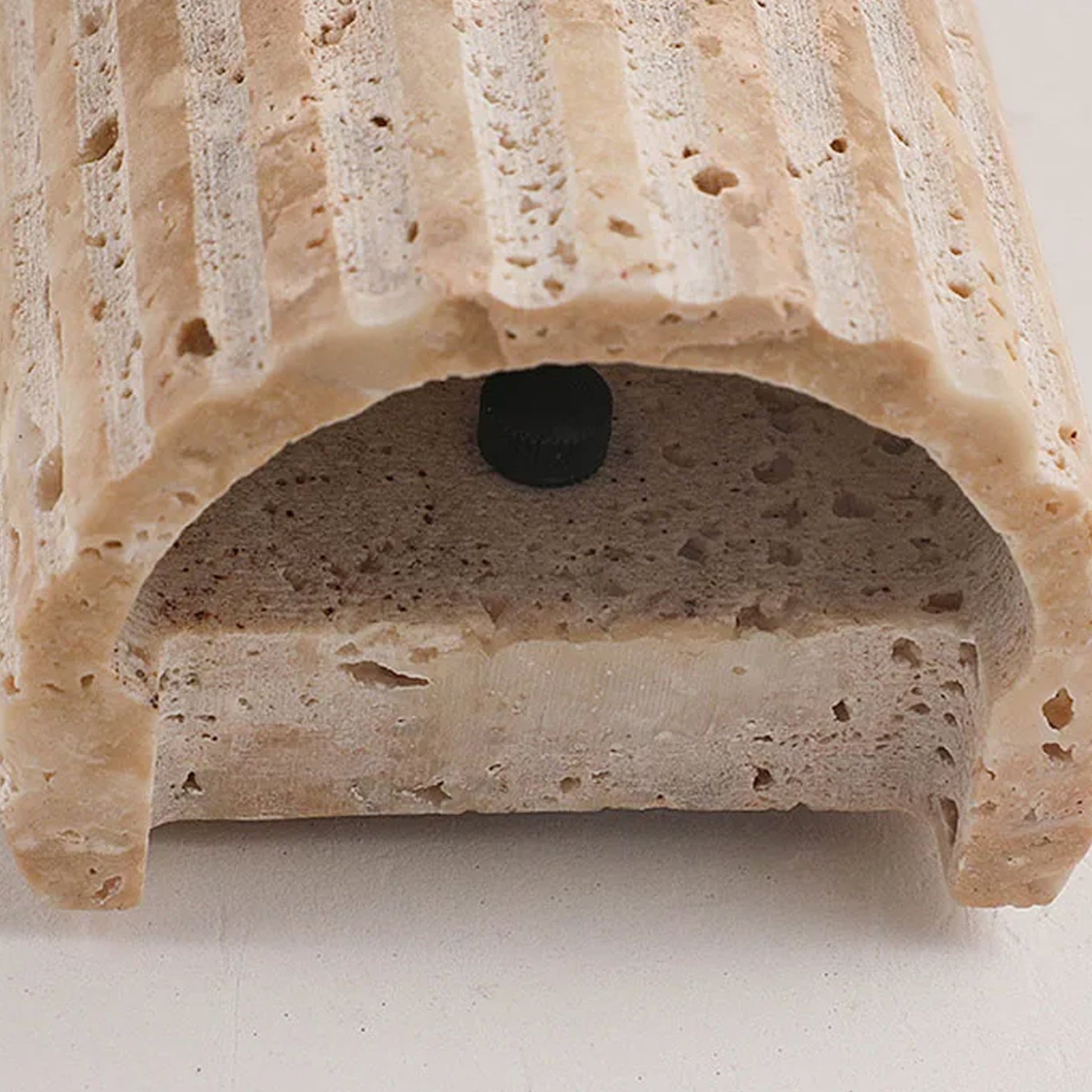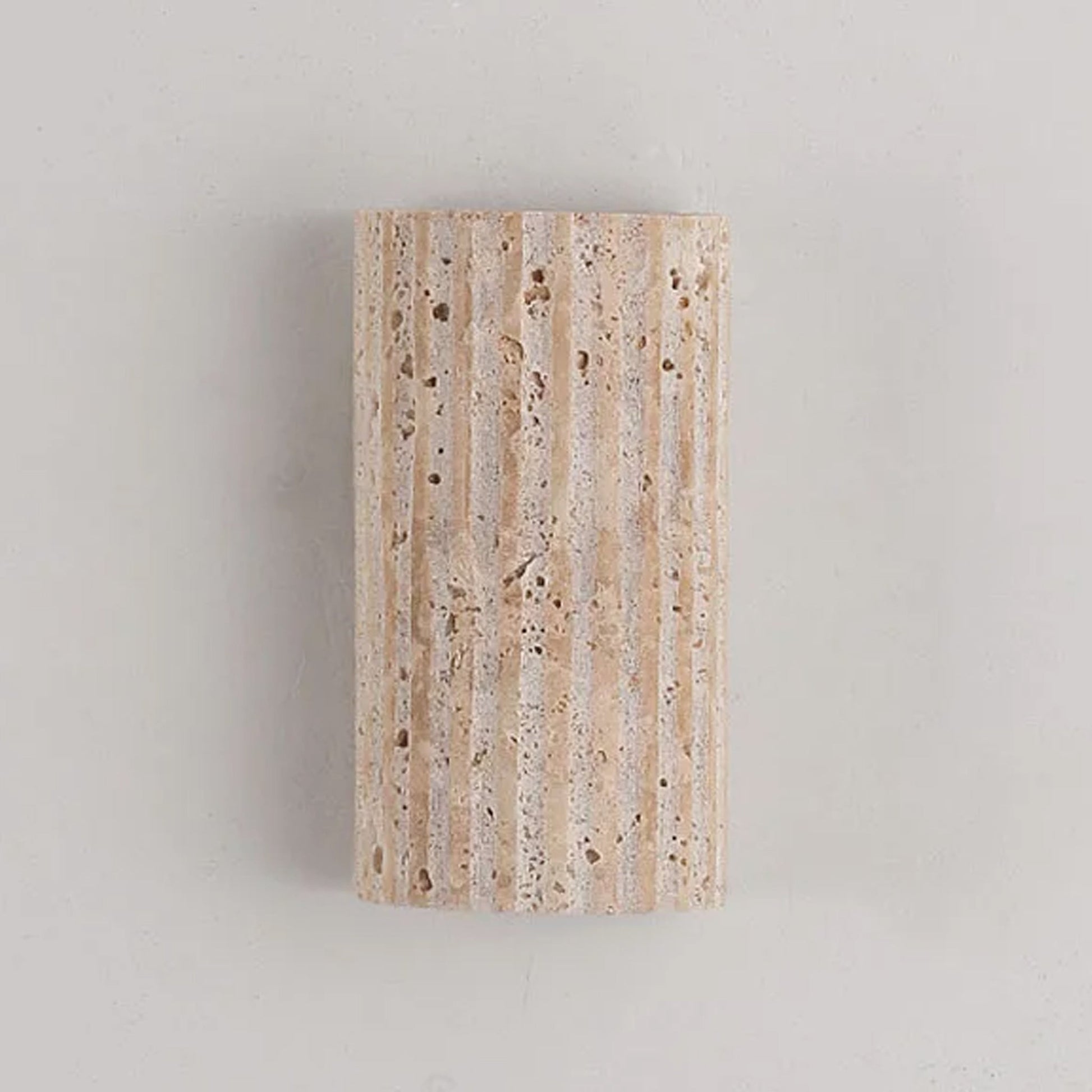 Cylinder LED Wall Light | Up Down Sconce For Hallway & Bedroom is a travertine wall light in a half-cylinder form with LED illumination for indoor spaces. Its natural stone texture and gentle glow enhance hallways and bedrooms with a calm, inviting atmosphere.