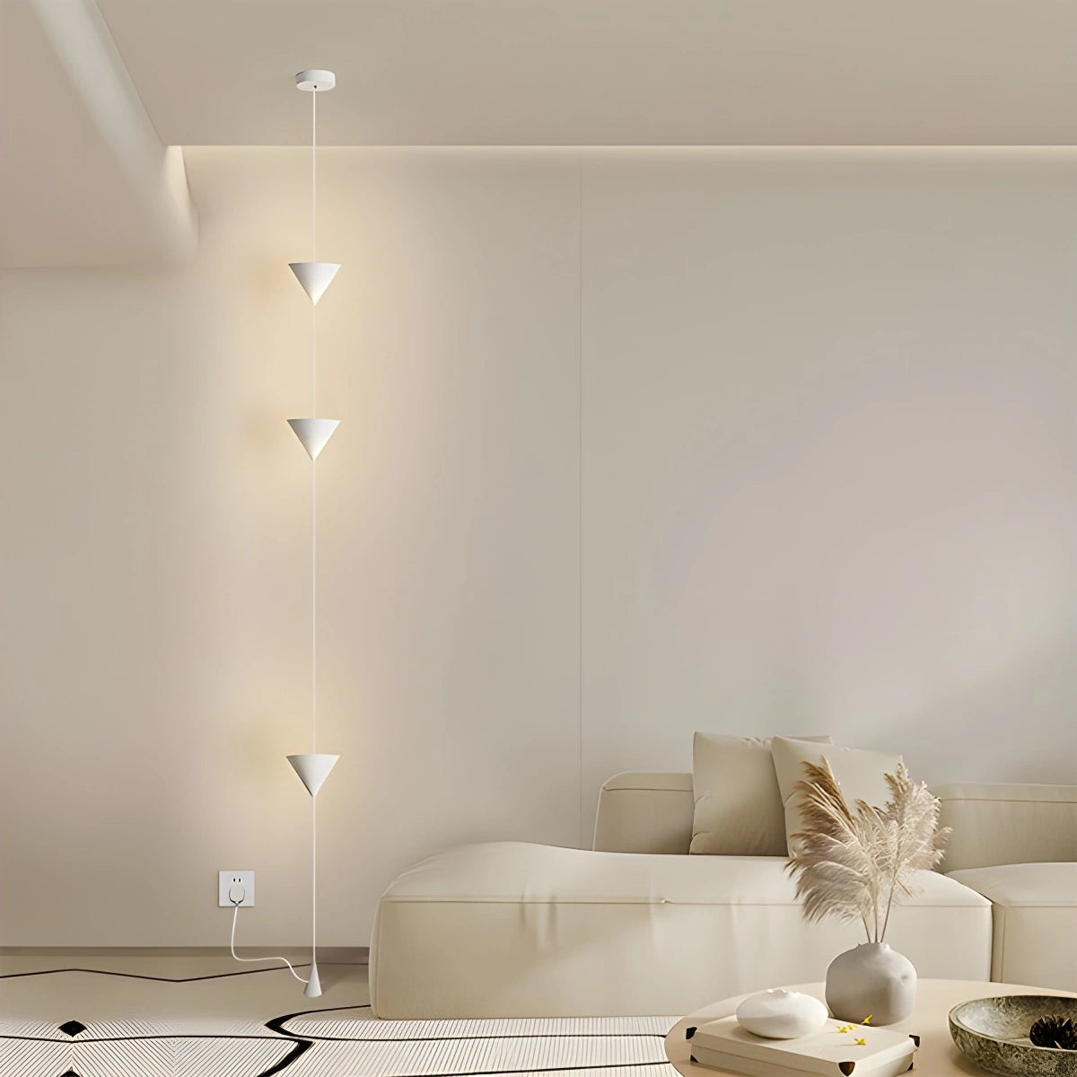 Floor To Ceiling Lamp | Adjustable Ambient Lighting pairs a modern conical shade with an adjustable cable (up to 3.5 m) to position light where it’s needed. With an integrated LED source, it brings a soft, inviting glow to living rooms, bedrooms or offices.