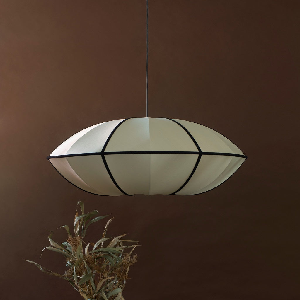 Japanese Lantern Pendant Light | Soft Ambient Lighting introduces a refined lantern profile in silk and metal, casting a soft, atmospheric light. Ideal over dining areas or in bedrooms, it brings a calm focal point to everyday spaces.