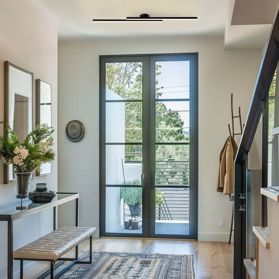 Linear Ceiling Light | Slim Double Bar Semi Flush For Living Room Bedroom Hallway